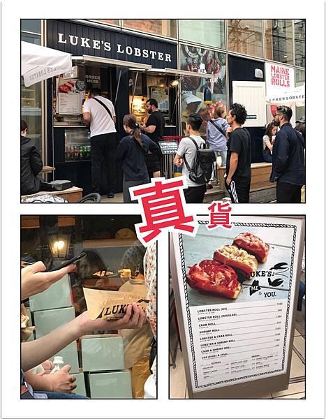A3出口一上來就看到了「Luke's Lobster」龍蝦三明治,哇!上次大阪沒找到,今天真幸運,不太確認所以問了google ,招牌顏色不同,怪!熊爸說「店家改風格吧!名字都ㄧ樣」,聽聽有理就買了,直到看到正宗版「Luke's Lobster」時,才傻笑了ㄧ下,昏倒!,但這家是「假」的但還是不錯吃。