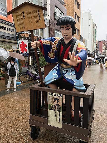 除了知名的雷門、寺院內的天井繪、五重塔等多處景點也值得一看,在雷門旁路邊也有人力車可以搭乘,今天下著大雨連車伕都躲雨了。
